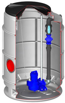 Poste de relevage Pe 1 pompe eaux usées sur barre de guidage